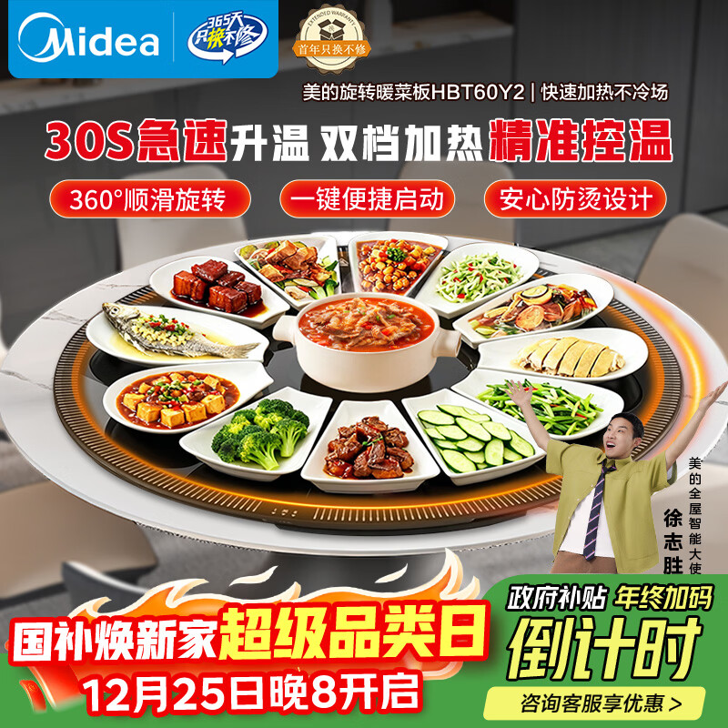 美的(Midea)暖菜板 火锅加热垫 饭菜保温板加热板 热菜板家用多功能旋转餐桌转盘(60CM圆形)可旋转HBT60Y2