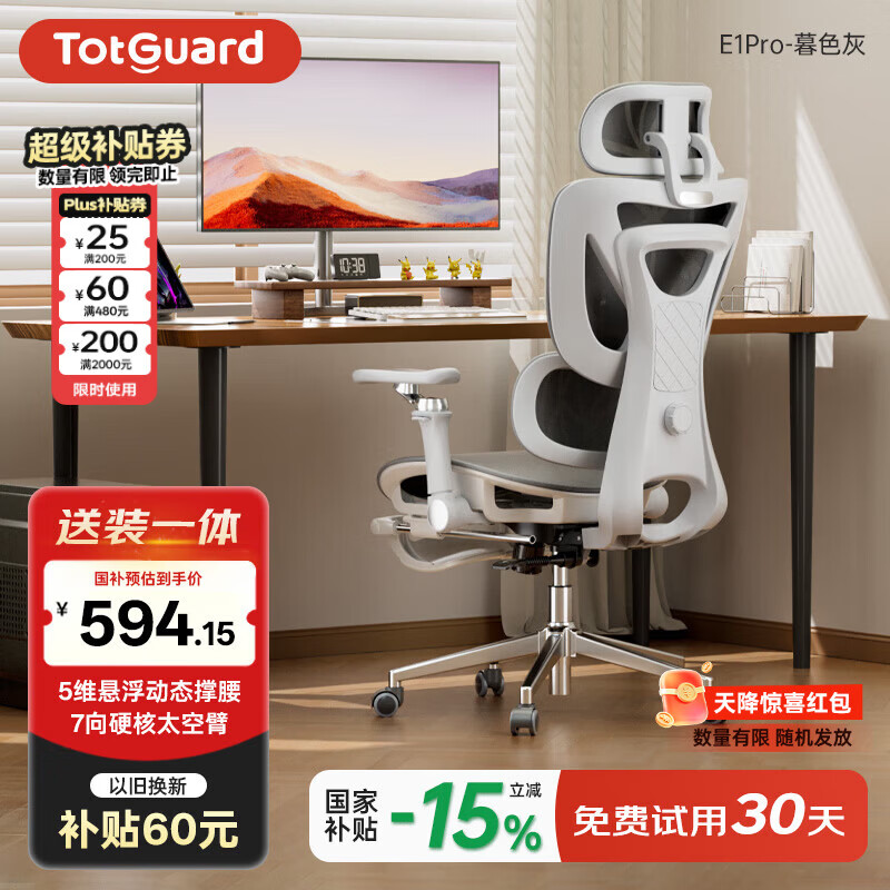 Totguard 人体工学椅电脑椅办公椅子电竞椅学习椅人工力学椅 E1Pro-暮色灰