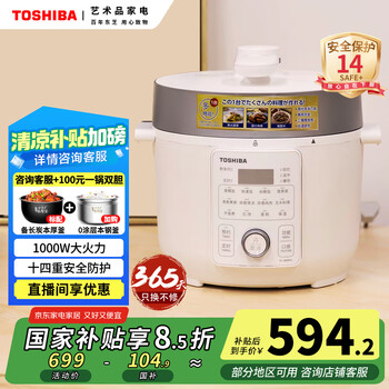 东芝(TOSHIBA)14重安全保护 4.8L 4人智能压力锅 家用高压电压力锅 无水料理大容量电饭煲