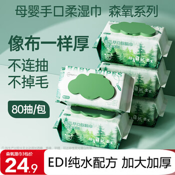 超亚孕产妇EDI纯水护理湿巾纸巾加厚加大擦脸擦手产后护理清洁湿巾 森氧系列 【热卖装】 80抽 3包