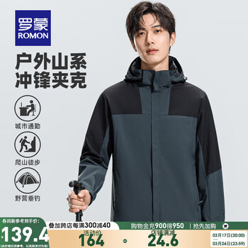 罗蒙(ROMON)户外冲锋夹克衣服2024春季新款情侣可拆卸帽登山外套 7J16211A幻影黑/深灰绿 (男款) 2XL