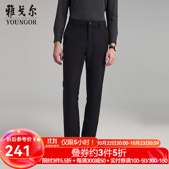 雅戈尔(YOUNGOR)裤子男士2024秋冬季青年男休闲裤棉羊毛DP免烫休闲裤合款 藏青VCDP339936FWA 175/84A