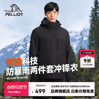 伯希和(Pelliot)【山行】冲锋衣三合一男女秋冬外套可拆卸抓绒内胆防风防水夹克 【男款】曜石黑 XL