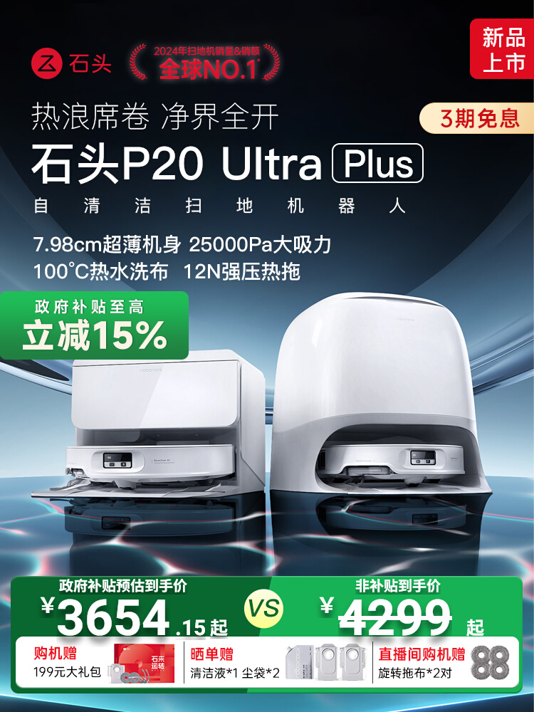 【新款上市】石头新品P20 Ultra Plus扫地机器人吸拖地一体自清洁