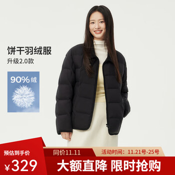 坦博尔小红书同款2024新款羽绒服女轻薄短款衬衫领韩版外套TBF330226D 黑色 155/80A