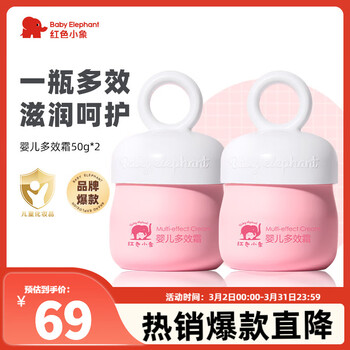 红色小象儿童面霜【优选】婴儿宝宝润肤霜保湿温和滋润 婴儿多效霜50g*2瓶