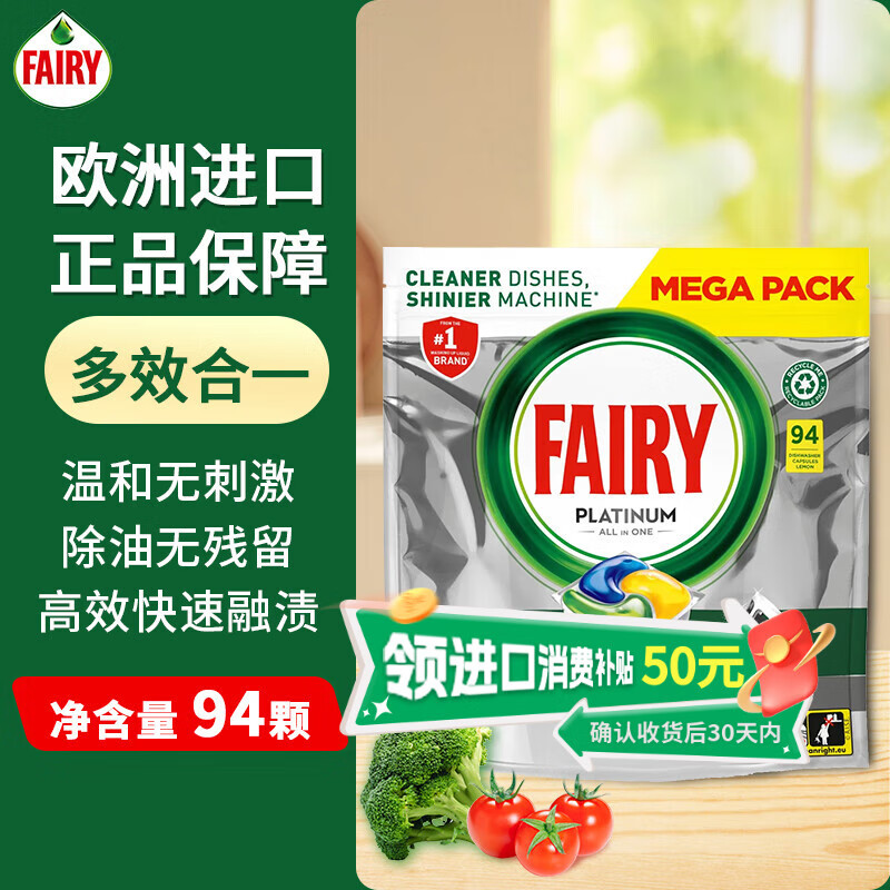 fairy 铂金洗碗凝珠-量子洗涤凝珠洗碗块洗碗机凝珠94颗-柠檬