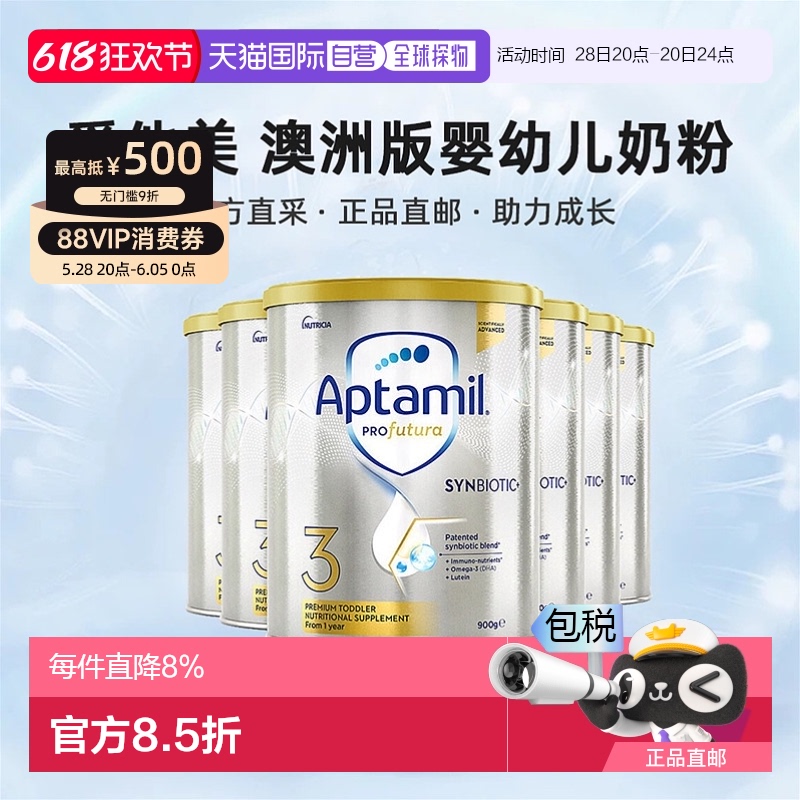 Aptamil爱他美升级版白金婴幼儿奶粉3段1-3岁助力眼脑发育900g*6