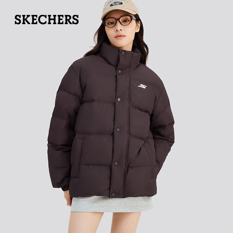 斯凯奇(Skechers)羽绒服短款冬季立领保暖外套百搭休闲男女同款大衣P423U038