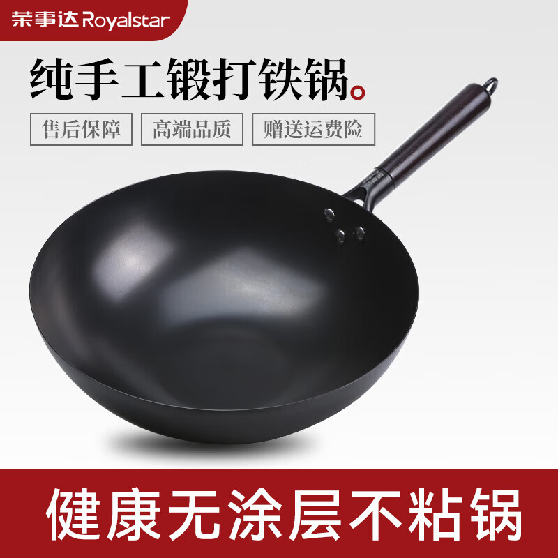 荣事达(Royalstar)章丘炒菜锅铁锅家用不粘锅无涂层熟铁炒锅电磁炉燃气通用 章丘铁锅无耳无盖 34cm