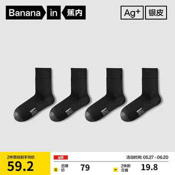 蕉内【王一博同款】501S男士袜子商务休闲棉袜7A抗菌防臭透气中筒4双