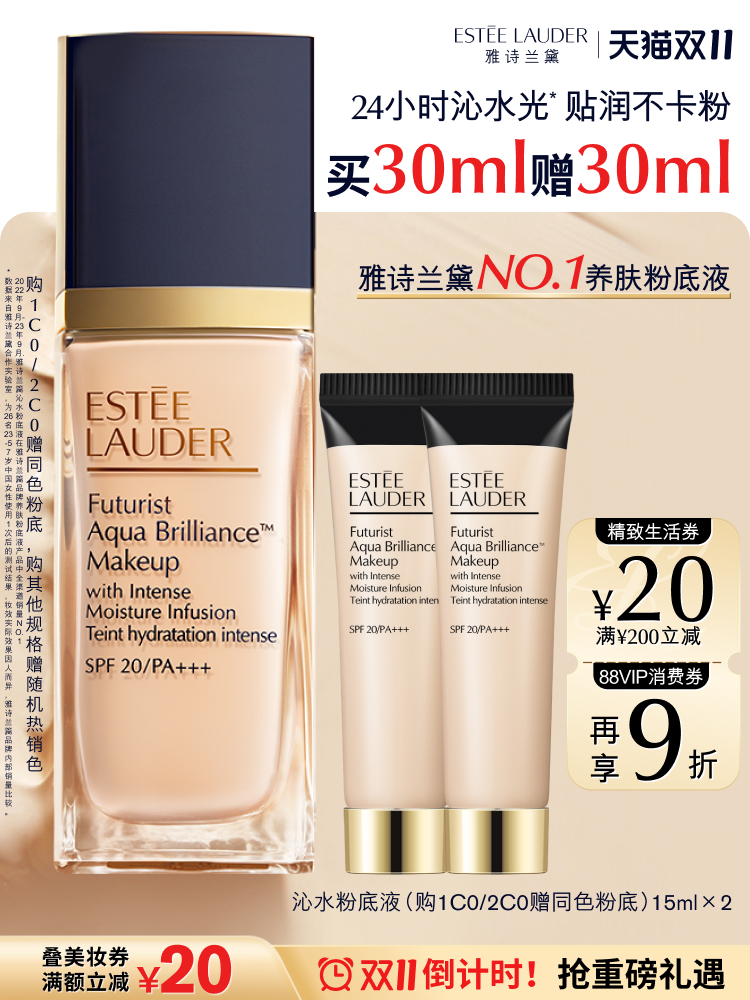 【11.11狂欢】雅诗兰黛沁水粉底液干皮救星 持久遮瑕防晒奶油肌
