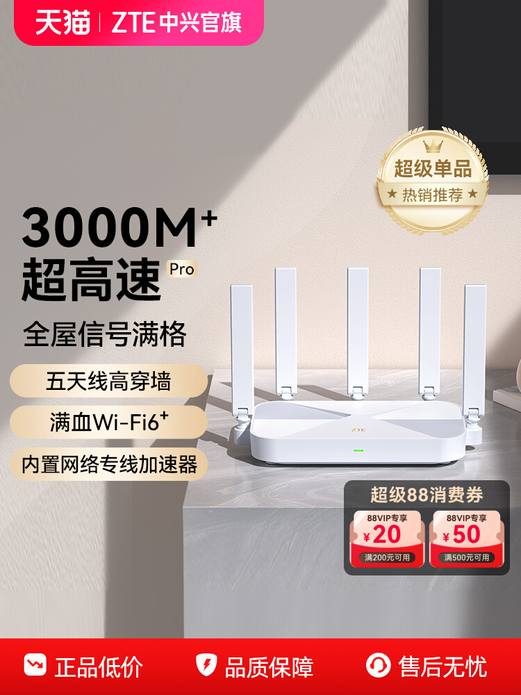 ZTE中兴AX3000M巡天版wifi6无线电竞路由器千兆端口双频家用全屋大中华户高速光纤穿墙为游戏智能子母mesh5G