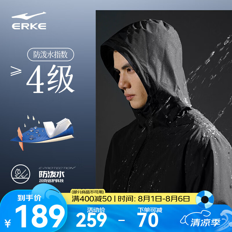 鸿星尔克于适同款|外套男春夏季防泼水运动服上衣风衣轻户外休闲软壳夹克 【1089】正黑-连帽常规 XL (175cm/140斤)
