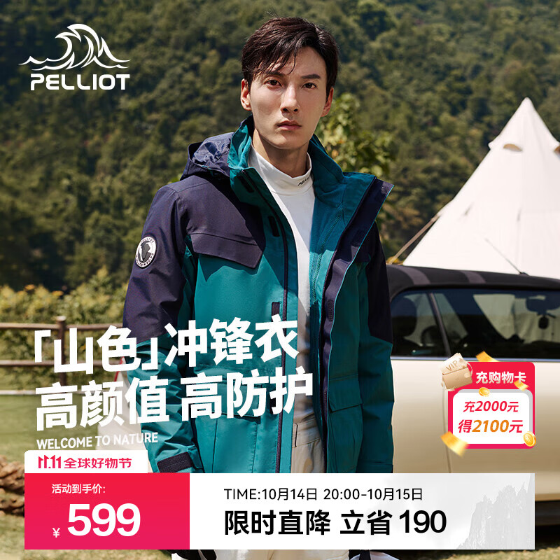 伯希和(Pelliot)【成毅同款】山色冲锋衣三合一男女外套秋冬户外保暖夹克登山服 【男】云杉绿 S