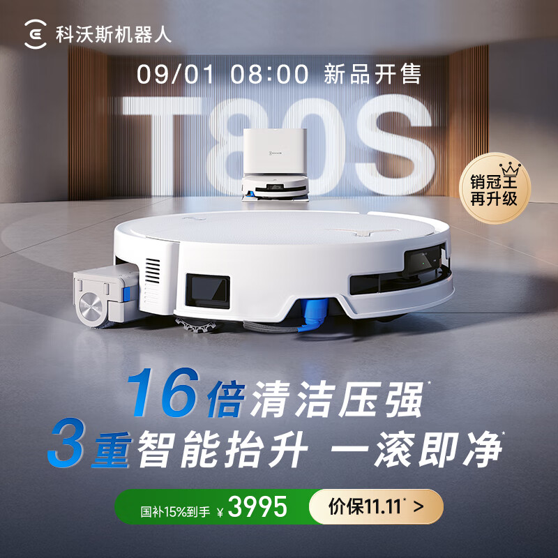 科沃斯T80S滚筒洗地机器人【七夕情人节礼物】白色上下水版 扫地机器人DEX62【国家补贴】