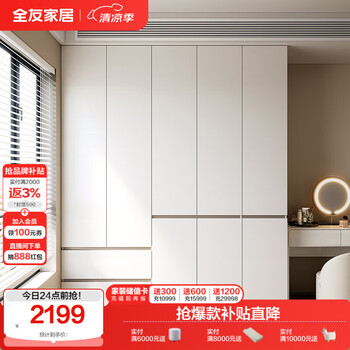 全友家居 大衣柜卧室现代简约家具衣服收纳储物柜子挂衣橱靠墙家用