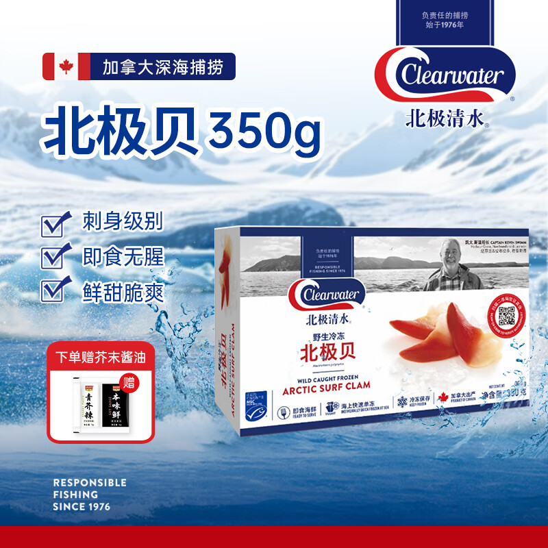 Clearwater北极清水加拿大进口北极贝350gM码 日料刺身即食切片 25-30只/盒