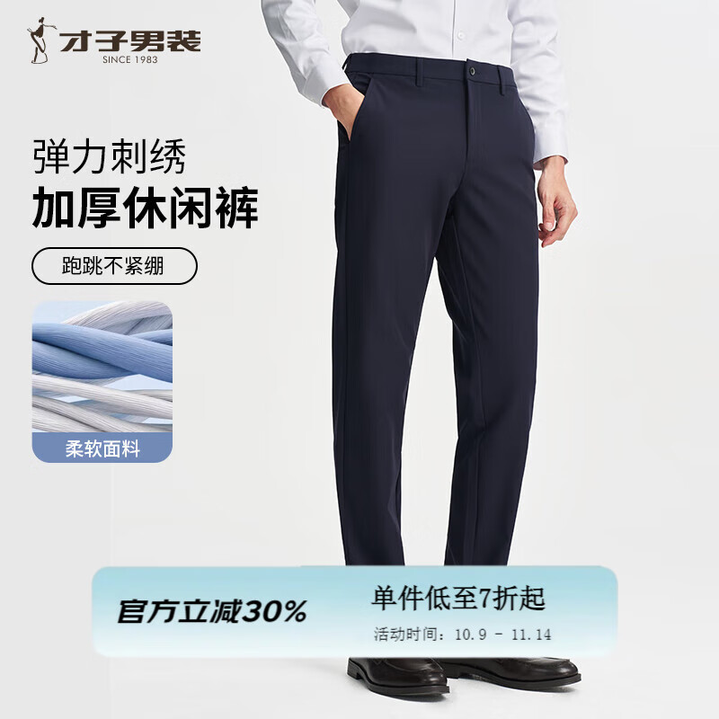 才子(TRIES)男士商务休闲裤弹力垂感百搭修身直筒裤春秋款加厚保暖西装裤 深蓝色 32 82cm