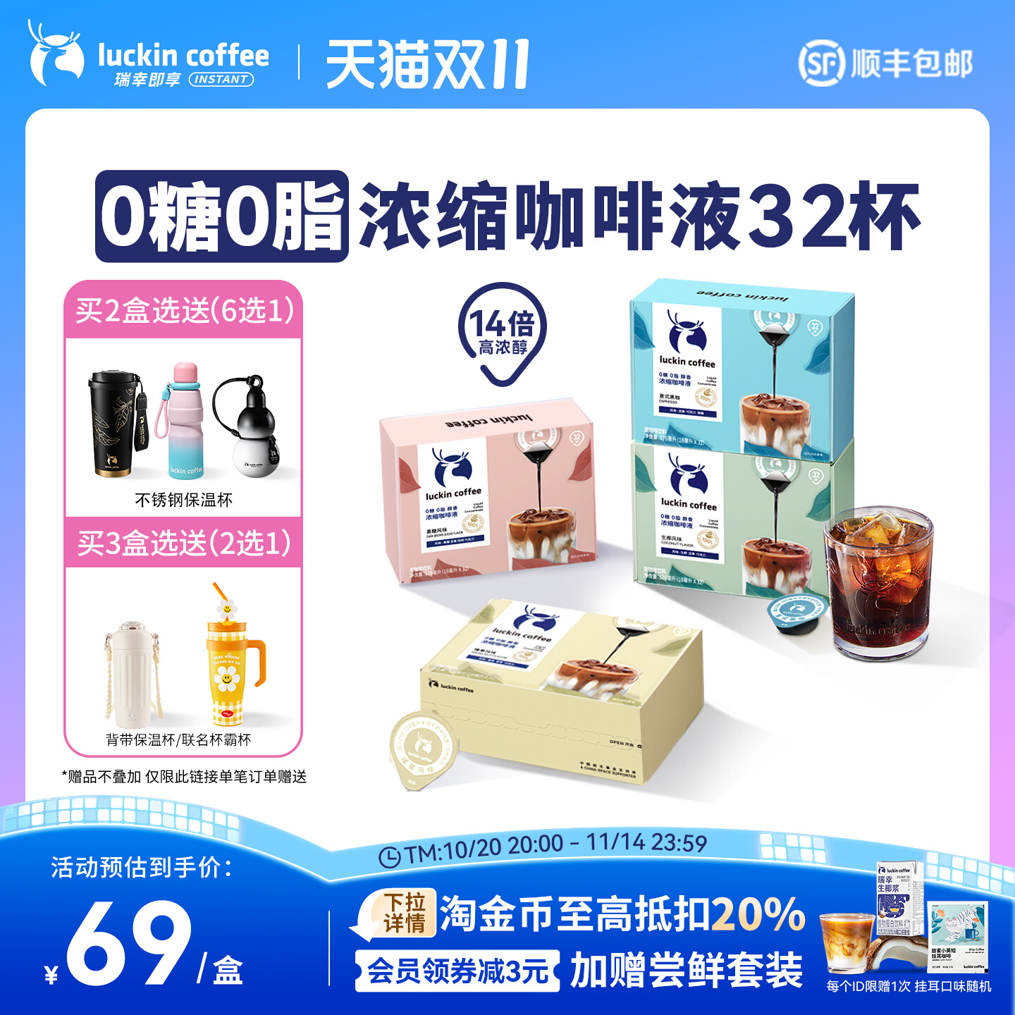 【双11立即抢购】瑞幸浓缩咖啡液0糖0脂速溶冰美式无糖黑咖啡