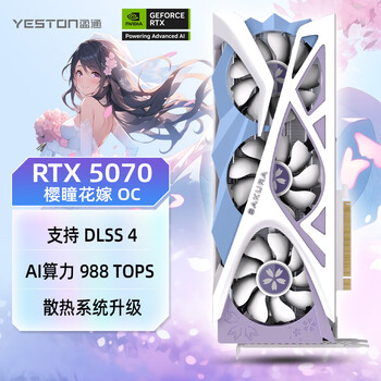 盈通(yeston)GeForce RTX 5070 12GB GDDR7 樱瞳花嫁OC 电竞游戏设计AI智能学习 电脑独立显卡