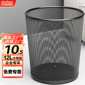 百家好世 家用金属网垃圾桶无盖12L圆形黑色客厅卫生间卧室铁丝网办公纸篓