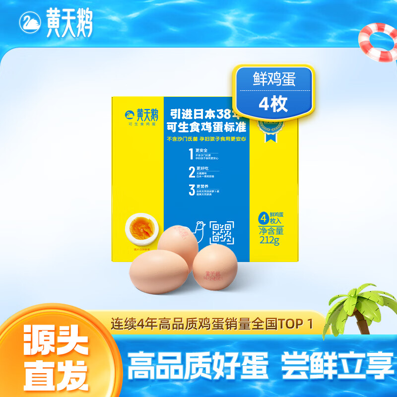 黄天鹅可生食鸡蛋 4枚/单枚53g礼盒装 生鲜鸡蛋早餐源头直发 无抗生素