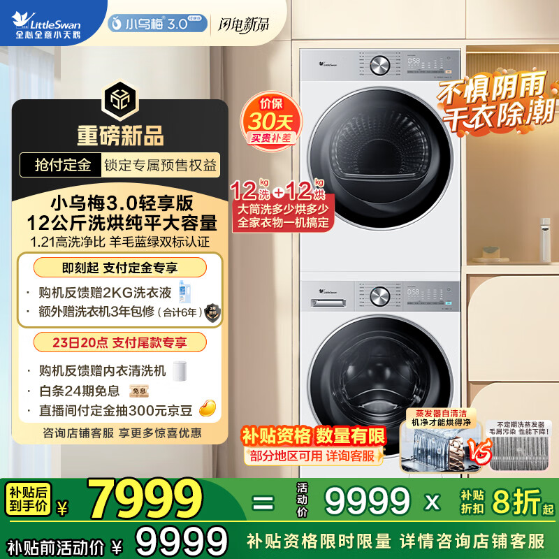 小天鹅(LittleSwan)洗烘套装 12KG滚筒洗衣机+12KG热泵烘干机 纯平大容量【小乌梅3.0轻享版】TG12VE10PRO+10PRO