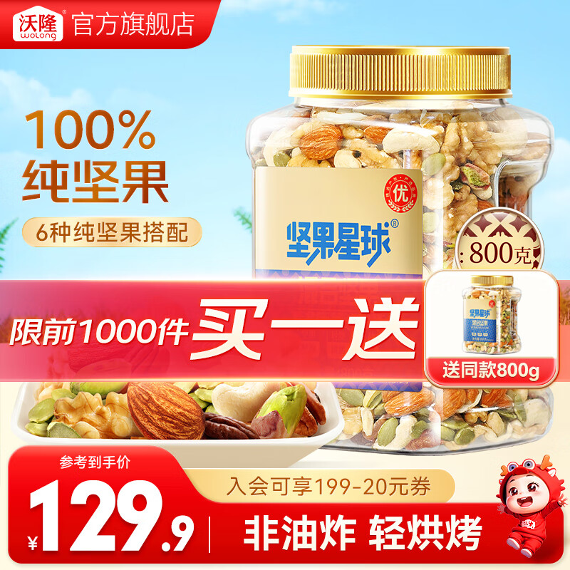 沃隆每日坚果 混合坚果什锦果仁果干健康零食办公室小吃罐装食品 坚果星球800g/罐【6种纯坚果】