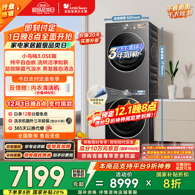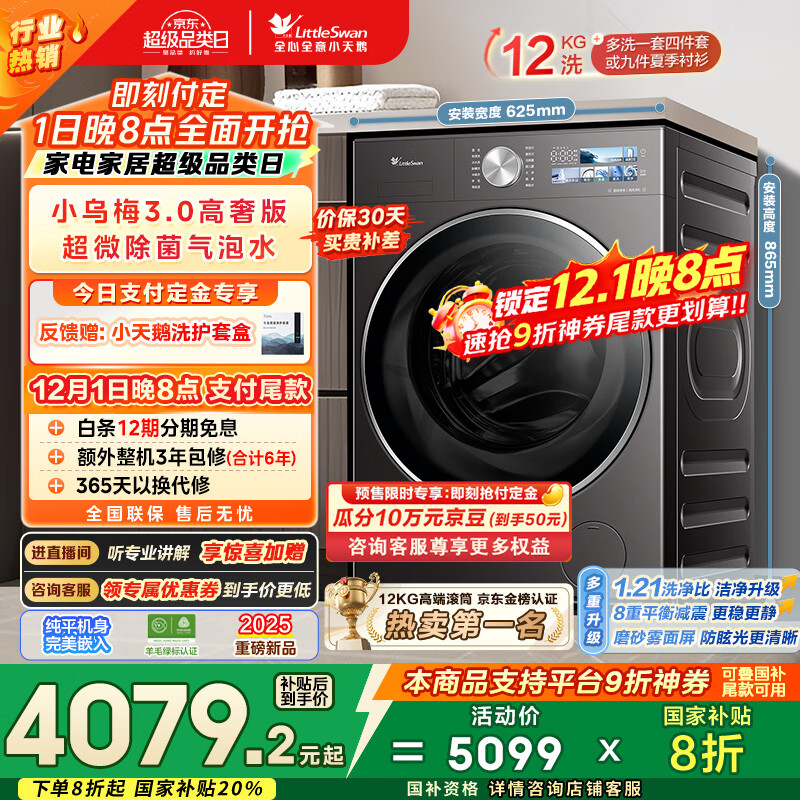 小天鹅(LittleSwan)滚筒洗衣机全自动家用 纯平全嵌【小乌梅3.0高奢版 TG12VE40PRO】家电国家补贴20% 以旧换新 超薄