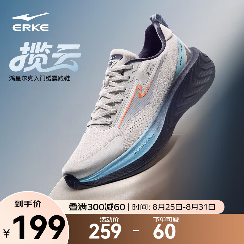 鸿星尔克揽云跑步鞋男2025新款软弹缓震跑鞋透气轻便运动鞋男鞋子男 铅笔灰 【男】 42