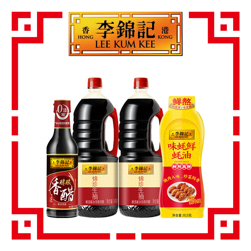 李锦记 约4.8kg 家庭常用四件套 锦珍生抽+香醋+味蚝鲜蚝油 调味酱油