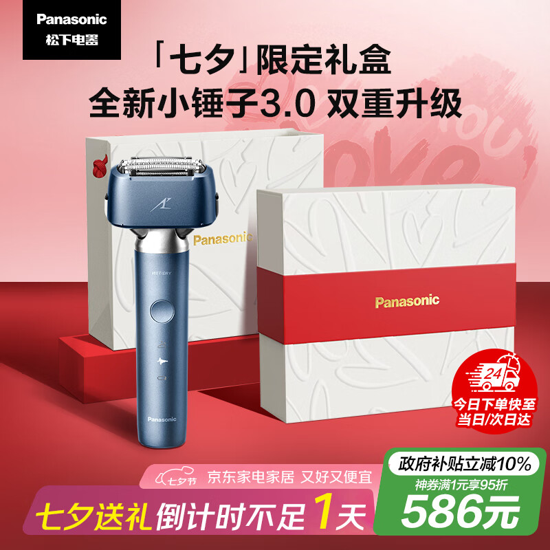 松下(Panasonic)全新小锤子3.0剃须刀电动往复式顺滑滚轮男士刮胡刀Type-c七夕礼物LM36雾蓝色
