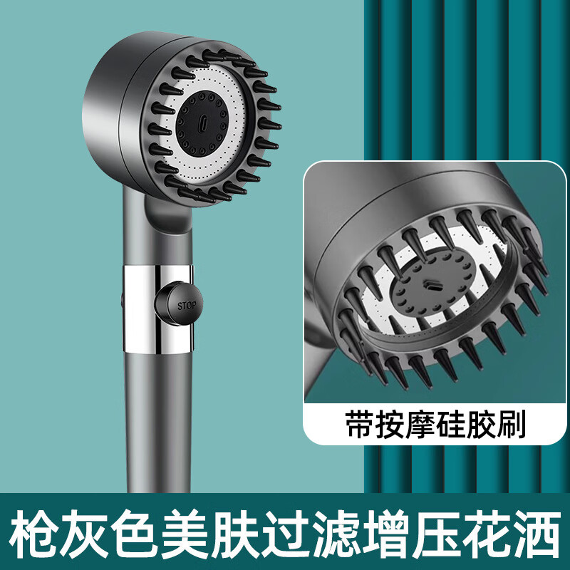 夕纪增压花洒喷头超强浴室洗澡淋浴强劲加压浴霸淋雨按摩过滤花晒套装 枪灰按摩过滤花洒 无规格
