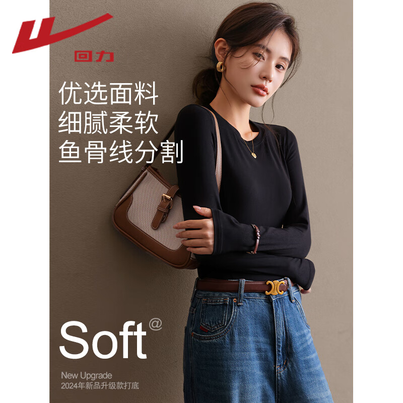 回力(Warrior)打底衫女装新款分割设计感修身长袖t恤女保暖2025年秋冬季上衣服1 黑#纯色 L