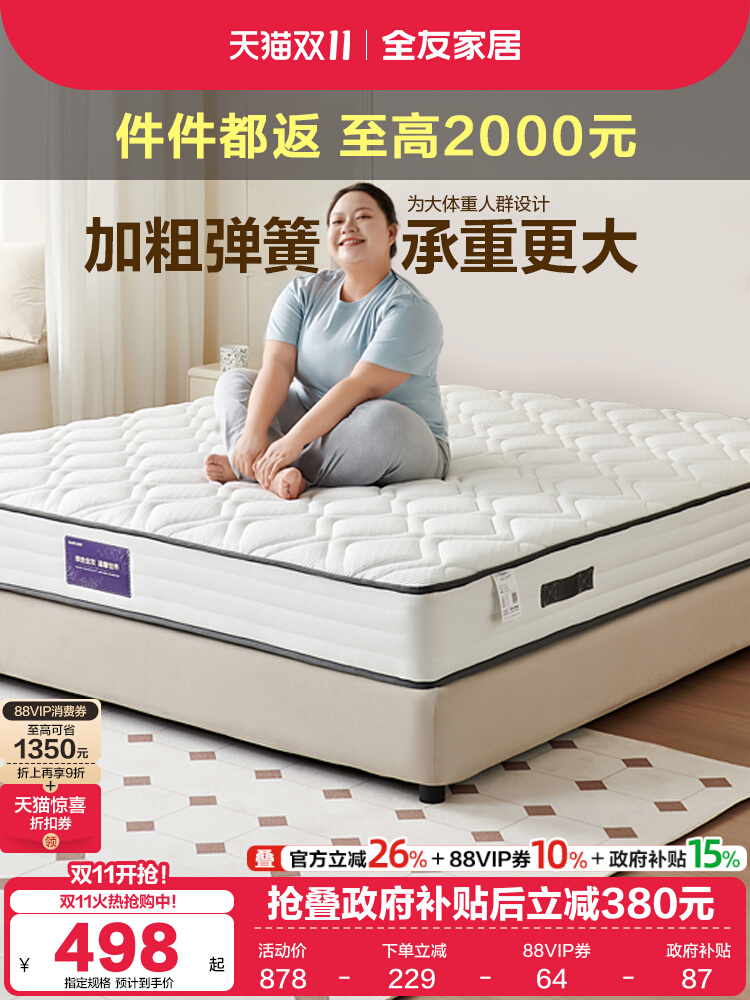 全友家居席梦思床垫硬垫子家用卧室双人2米乘2米2床垫子180x200