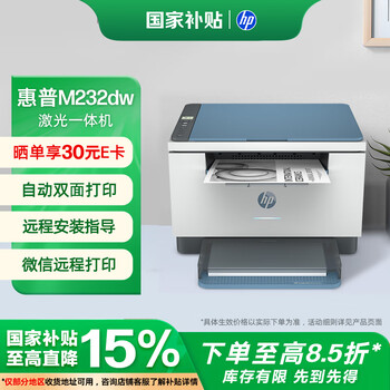 惠普(HP)M232dw 自动双面无线激光黑白打印机 学生家用一体机 高速高效(低成本 体积小)(跃系列)