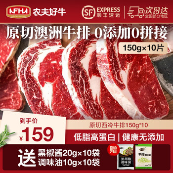 农夫好牛进口原切牛排西冷牛排净 澳洲雪花牛排不拼接纯牛肉牛扒 冷冻生鲜 10原切西冷+10酱包 1500g