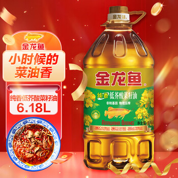 金龙鱼 食用油 非转基因压榨 纯香低芥酸菜籽油6.18L