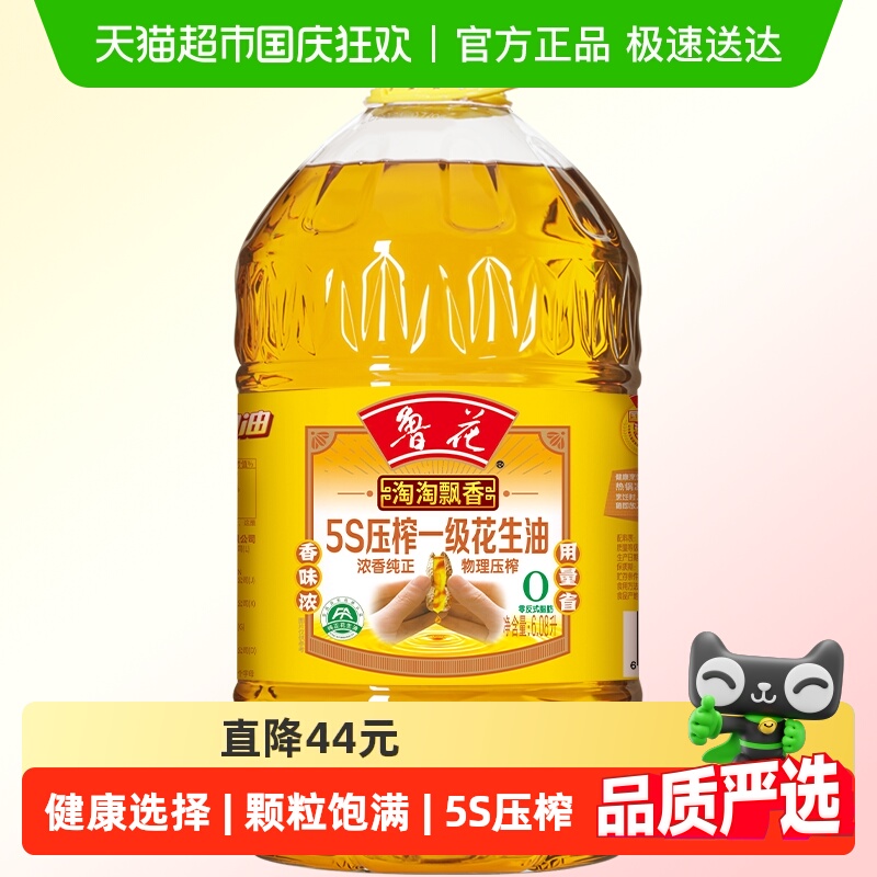 鲁花淘淘飘香花生油6.08L压榨食用油厨房香味浓郁
