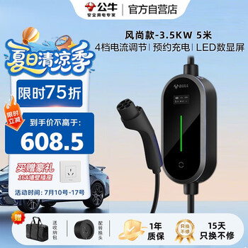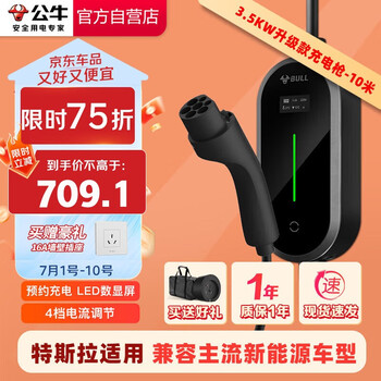 公牛新能源汽车便携充电枪随车充16A/3.5KW适配于小米su7汽车特斯拉比亚迪等 风尚款10M