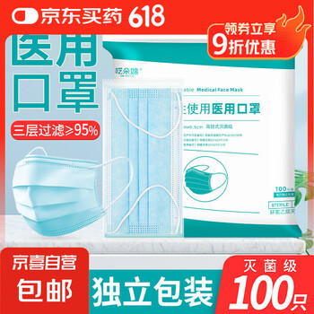 一次性医用口罩 每只独立包装 灭菌级有效阻菌率≥95% 三层防护 100只/袋 独立包装灭菌级