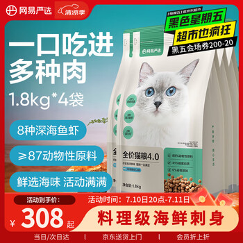 网易严选宠物主粮幼猫成猫全价猫粮 深海鱼虾口味1.8kg*4袋