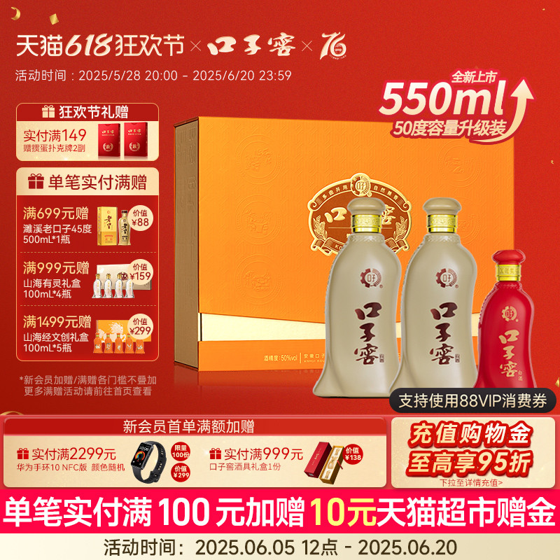 口子窖5年型礼盒50度550mL*2瓶 五年型安徽兼香型白酒送礼送长辈