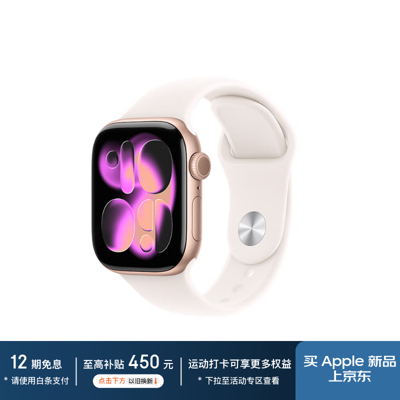 Apple/苹果 Watch S11 智能手表GPS+蜂窝款42毫米玫瑰金色铝金属表壳淡桃粉色运动型表带S/M MF984CH/B