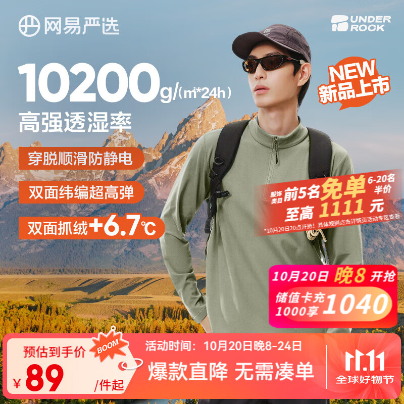 网易严选25新品210g摇粒绒打底衫双面抓绒衣保暖高弹透气抗静电不易变形 A款新品高强透湿半拉链-旷野绿 L