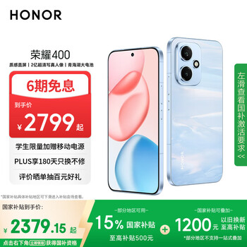荣耀400 AI 2亿超清写真人像 7200mAh青海湖大电池 12+512 海风蓝 5G AI 新款 学生 拍照手机 国家补贴