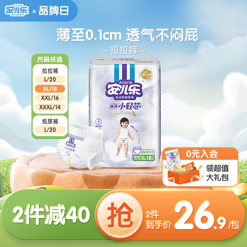 安儿乐小轻芯纸尿裤拉拉裤L-3XL试用便携透气mini婴儿官方旗舰店