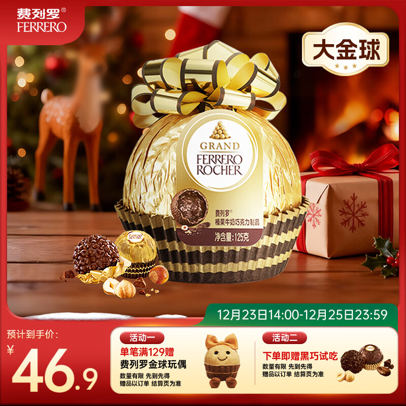 费列罗巧克力 金色璀璨奢华大金球125g 休闲零食 伴手礼 圣诞节礼物