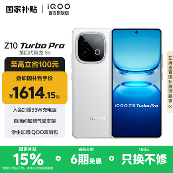 vivo iQOO Z10 Turbo Pro 国家补贴 第四代骁龙8s 自研电竞芯片Q1 等效7000mAh超薄蓝海电池 游戏手机 云海白 12GB 256GB 官方标配